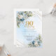 Celebrate a milestone moment with this elegant Sweet Sixteen invitation, featuring a refined watercolor design of dusty blue florals blended with soft white flowers and fresh eucalyptus greenery. Framed by a shimmering gold glitter border and paired with graceful script lettering, this invitation sets a sophisticated tone for a truly unforgettable Sweet Sixteen, Sweet 16th, or 16th birthday celebration.