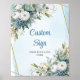 Bring timeless elegance to your special day with this watercolor dusty blue and eucalyptus wedding sign framed in luxurious gold glitter accents. Soft blue blooms, delicate eucalyptus leaves, and shimmering gold details create a romantic and sophisticated floral design, ideal for both modern and rustic weddings. This fully customisable DIY wedding sign is perfect for welcome signs, seating charts, bar menus, or ceremony decor. Personalise with your names, date, and message to match your theme beautifully. Designed to impress, this boho-inspired blue and gold wedding sign adds a touch of charm and class to your celebration.