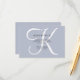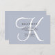 These stylish wedding reception information insert cards display your monogram in large, modern text coloured in white on a dusty blue background.