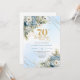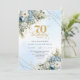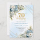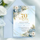Celebrate a milestone in style with this elegant 70th birthday invitation featuring watercolor dusty blue and white flowers, soft eucalyptus greenery, and a shimmering gold frame. Designed in chic boho style with refined script lettering, this floral invitation is perfect for a classy 70th birthday party. Ideal for formal, garden, or luxury celebrations with a timeless, sophisticated touch.