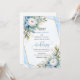 Ideal for formal, modern, or rustic-chic weddings, this dusty blue and gold floral invitation pairs perfectly with matching stationery, RSVP cards, menus, and signage for a cohesive event design.