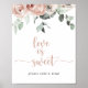 This classic dusty pink rose floral love is sweet sign is perfect for a rustic wedding or bridal shower. The design features elegant watercolor dusty pink roses and green foliage, neatly assembled into beautiful bouquets.