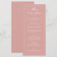 Add a touch of romantic elegance to your reception tables with our Classic Dusty Rose & White Border Script Wedding Menu. Featuring a soft dusty rose background, elegant white script, and a refined white border, this menu beautifully combines timeless style with sophisticated charm. Perfect for presenting your carefully selected wedding cuisine, it’s a memorable detail that complements your wedding décor effortlessly.