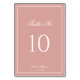 Classic Dusty Rose & White Border Script Wedding Table Number