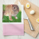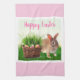 Classic Easter Bunny and Holiday Basket / Pink Tea Towel