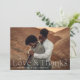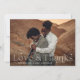 Elegant wedding thank you cards featuring your full-bleed horizontal wedding photo with "Love and Thanks" in white lettering. Personalise the modern photo thank you card with your name. The back of the photo wedding thank you card displays your custom message in white lettering with a solid hunter green background.