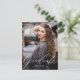 An elegant and modern double-sided graduation invitation featuring a beautiful calligraphic script font. This single photo design will showcase your favourite senior photo. The back of the card features four more photos, and space for details for a graduation party, or any other message you'd like to add.