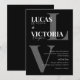 Classic Elegant Black and White Monogram Wedding Invitation. Bold initials on the black background. The design tool allows you to modify text elements to your preference. To change the text select «Details». You have the flexibility to adjust the colours of your choice. Customise your design with ease using this feature.
