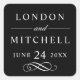 Classic Elegant Black Custom Wedding Monogram Square Sticker