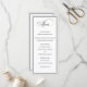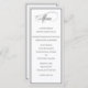 With classic elegance, this wedding menu lovely script flourishes calligraphy in the title text. A simple silver-grey and black border frames your text with contemporary style. The remaining text on the front of the menu is set up in an easy to use template where you can edit with your planned menu. You can add or delete lines of text, resize or change the font style as well as move the text around to suit your requirements. To simplify the customisation of this menu, first edit the text shown in the design template with your entries. Then, choose "customise further" to move things around and re-position text as needed to suit your desired text layout.