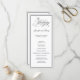 With classic elegance, this wedding program uses lovely script flourishes calligraphy prominently highlight the front of the program. A simple silver-grey and black border frames your text with contemporary style. The remaining text on the front and back are all set up in an easy to use template where you can edit with your wedding program and your wedding party participants. You can add or delete lines of text, resize or change the font style as well as move the text around to suit your requirements. To simplify the customisation of this program, first edit the text shown in the design template with your entries. Then, choose "customise further" to move things around and re-position text as needed to suit your desired text layout.