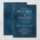 Classic and elegant wedding invitation with a floral blue watercolor background and white letters. Text-only design with traditional wording. Digital printable or physical printed paper options. Personalise it with the names of the Mr. and Mrs., venue location, registry, RSVP information, and any details you need to include. Matching suite products available.