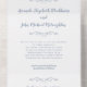 Elegant and simple budget all-in-one wedding invitations in trendy dusty blue and white are classic, formal, and timeless. Borderless design allows you to easily choose the paper shape for your invitation to invite guests to your celebration. Two decorative flourishes each containing a single heart delicately envelope the name of the bride and groom, the response request of the RSVP tear-off portion & the return address information for the RSVP card. A single line of text at the top reads together with their parents but may be edited to suit your needs. Other text configurations & paper selections are available in this invitation suite design. For optimal results follow the template example capitalising words as in the sample. Please direct questions or custom requests to invitationsuites@gmail.com or using the message link feature.
