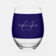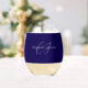 classic elegant name customised blue and white stemless wine glass