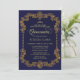 Classic Elegant Navy Blue Gold Tiara Quinceanera Invitation