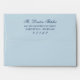 Custom A7 navy blue and dusty blue wedding invitation mailing envelopes feature an elegant white return address that can be personalised. Please shop our Classic Elegant Navy Blue Wedding Collection for coordinating designs.