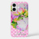 Classic elegant pink white peony floral polkadots Case-Mate iPhone case