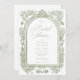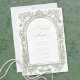 Announce your special day with an elegant traditional bridal shower invitation invitation featuring a detailed, vintage-style engraving arched frame border of florals in soft sage green. Perfect for a formal or casual affair with a classic, timeless aesthetic. This refined design offers an opulent look. Created by Simply Farmhouse Press.