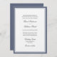 Classic wedding invitation with parents of the bride named in the introduction as host. Traditional elegant script and plain dark grey text within a blue double border. Blue back. To adjust the layout, click Personalise It, Edit Text, then click and drag text sections to desired locations. Use Cntrl to select and move multiple sections at once.