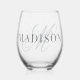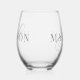 Classic Elegant Script Monogram Initial Name Stemless Wine Glass