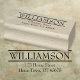 A personalised rubber stamp design featuring two rules highlighting your name above your return address text.