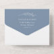 Classic and elegant slate blue all in one wedding invitation is a unique tri-fold invite option that is self-enclosed, sealed, mailed to guests with a detachable RSVP postcard; no need for envelopes! Design features modern calligraphy script accents with classic style typography. The guest address can be included on the back side - printed or handwritten, along with the postage for mailing. The back flap includes a simple floral accent with custom return address text, and the RSVP postcard includes the return address on the back so it can be torn off with help of a perforated fold and mailed back without an envelope. The slate blue and white colours can be modified to coordinate with your wedding colour scheme.