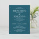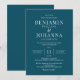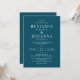 Classic and elegant wedding invitation with a teal background and white letters. Text-only design with traditional wording. Digital printable or physical printed paper options. Personalise it with the names of the Mr. and Mrs., venue location, registry, RSVP information, and any details you need to include. Matching suite products available.