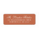 A graceful white script name and elegant typography bring romantic charm to this warm terracotta wedding return address label. Refined design and an earthy palette make it perfect for wedding invitations, bridal showers, save the dates, and engagement mailings. Personalize with the couple's names and address. A sophisticated finish for every wedding envelope.