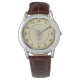 Classic Elegant Warm Gold Face Brown Leather Strap Watch
