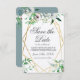 This classically elegant Save The Date Wedding Card features soft blue, pink, and white boho watercolor flowers within a gold double geometric frame feature botanical and berry flourishes. Customise this Save the Date with your own fonts or keep this popular typography as it is for your convenience. MIx and match with other items in this beautiful wedding collection.