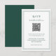 Classic style forest green / emerald green wedding RSVP Card featuring a simple and minimal design with an optional QR Code and details surrounded by a double border (if you prefer, you may remove the QR code in the design editing tool). The fonts alternate between and elegant script, a traditional serif and minimalist sans serif fonts. This response card is great for a formal wedding.