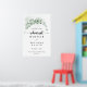 The product was so pretty! I was surprised when it arrived that it was just poster thickness but I purchased a foam board and used two sided tape to attach it so it could stand up. Perhaps I didn’t read carefully regarding the thickness of the paper. With this poster and the same design napkins, place cards and table cards, the rehearsal decorations were perfect! I added single burgundy hydrangeas to clear vases with fairy lights inside as centerpieces and it looked wonderful! Colors were beautiful! Printing was excellent!