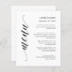Enhance the elegance of your wedding reception with classic fancy script wedding menu cards for plate settings, perfect for a variety of upscale events. These menu cards are ideal for formal black-tie weddings, sophisticated ballroom receptions, timeless traditional ceremonies, and luxurious destination weddings. Featuring classic script typography and an elegant design, they complement refined décor, chic table settings, and classic colour schemes. Whether you’re hosting an intimate dinner or a grand celebration, these menu cards provide a stylish and polished way to present your menu while adding a touch of timeless beauty to your special day.
