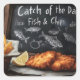 Classic Fish and Chips and Blackboard Illustration Square Sticker