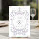 Classic Floral Garden Frame Lavender Wedding Table Number