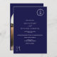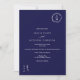 Classic elegant and soft floral monogram navy blue wedding arch photo featuring small flourish floral outlines, add your couple monogram, with boho navy blue a classic wedding invitation with a modern twist, add your photo on the back in an arch shape.