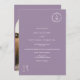 Classic elegant and soft floral monogram purple wedding arch photo featuring small flourish floral outlines, add your couple monogram, with boho purple a classic wedding invitation with a modern twist, add your photo on the back in an arch shape.