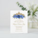 Modern Floral Royal Blue Navy Blue Gold Tiara Sparkle Glitter Birthday Quinceañera Invitation