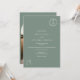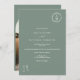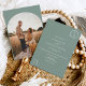 Classic elegant and soft floral monogram sage green wedding arch photo featuring small flourish floral outlines, add your couple monogram, with boho sage green, a classic wedding invitation with a modern twist, add your photo on the back in an arch shape.