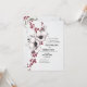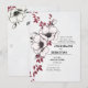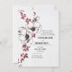 A sophisticated and timeless wedding invitation featuring large hand-drawn flowers with delicate red accents and a small butterfly.