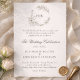 Celebrate your special day with this formal and traditional wedding invitation. Featuring a sophisticated sketched botanical wreath and a prominent surname monogram, this design offers a classic elegant look in a timeless gray, black, and white palette. Perfect for couples seeking an economical yet high-end aesthetic for their wedding celebration. Fully customizable with your personal details.