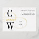 Announce your wedding date and location in chic classic style with these sleek save the date cards featuring your initials in elegant black lettering, joined by an ornate swooping "and" in gold foil with "save the date" worked into the design. Your names, wedding date, location and additional details are aligned at the upper right.