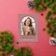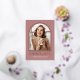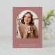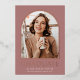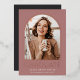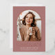 Elegant photo graduation announcement features a vertical or portrait orientated photo in a unique arched layout, on a dusty rose pink background with rose gold foil trim. "Graduate" appears beneath, along with your graduate's name and school or college. Add a personal message to the back, along with an additional photo.