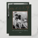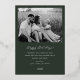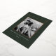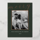 Classic minimalist two-sided family photo Christmas cards featuring gold foil frame on dark forest green colour background with personalised family photo and holiday messages.