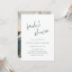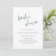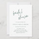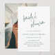 Elegant typographic style bridal shower invitation featuring a simple and minimal layout with a combination of a classic serif font and a modern handwritten calligraphy. The back has your favourite photo. The colour theme is evergreen / forest green and may be changed in the design editing tool.