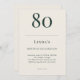 Deep forest green and linen cream birthday invitation featuring classic minimalist typography. Designed for a refined 80th celebration with customizable name age date time location and RSVP details.