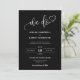 This invitation features an elegant "we do" calligraphy and simple sans serif typography font with an arch shape photo and QR code in a black background. The simplicity and clean design of this invitation works well with all wedding themes and definitely a great addition to your wedding.