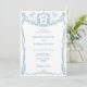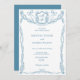 Classic Formal Elegant French Blue Coquette Floral Bow Invitation with a monogram crest, hand drawn by Savanamm