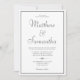 Classic formal and elegant wedding invitation with a traditional design with a border and formal text form with script calligraphy names. All text is editable and printed in a dark grey colour that can work well with the different paper types available for a luxury finish. The back can be left white or customised with text or a photo by clicking the button to edit the design. Matching invite suite products are available.
