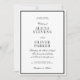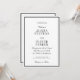 Simple elegant traditional black and white trendy all in one wedding invitation with black frame, vintage typography and calligraphy script, and guest information to RSVP online, website address, accommodation, and direction details.